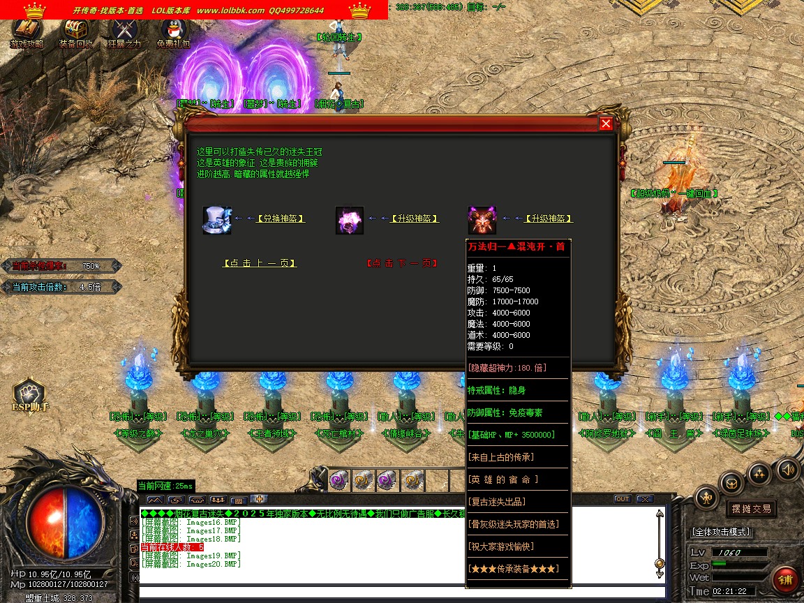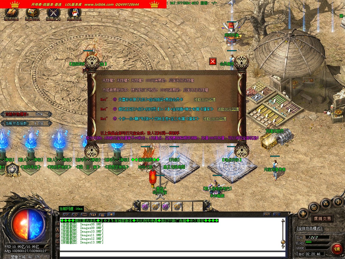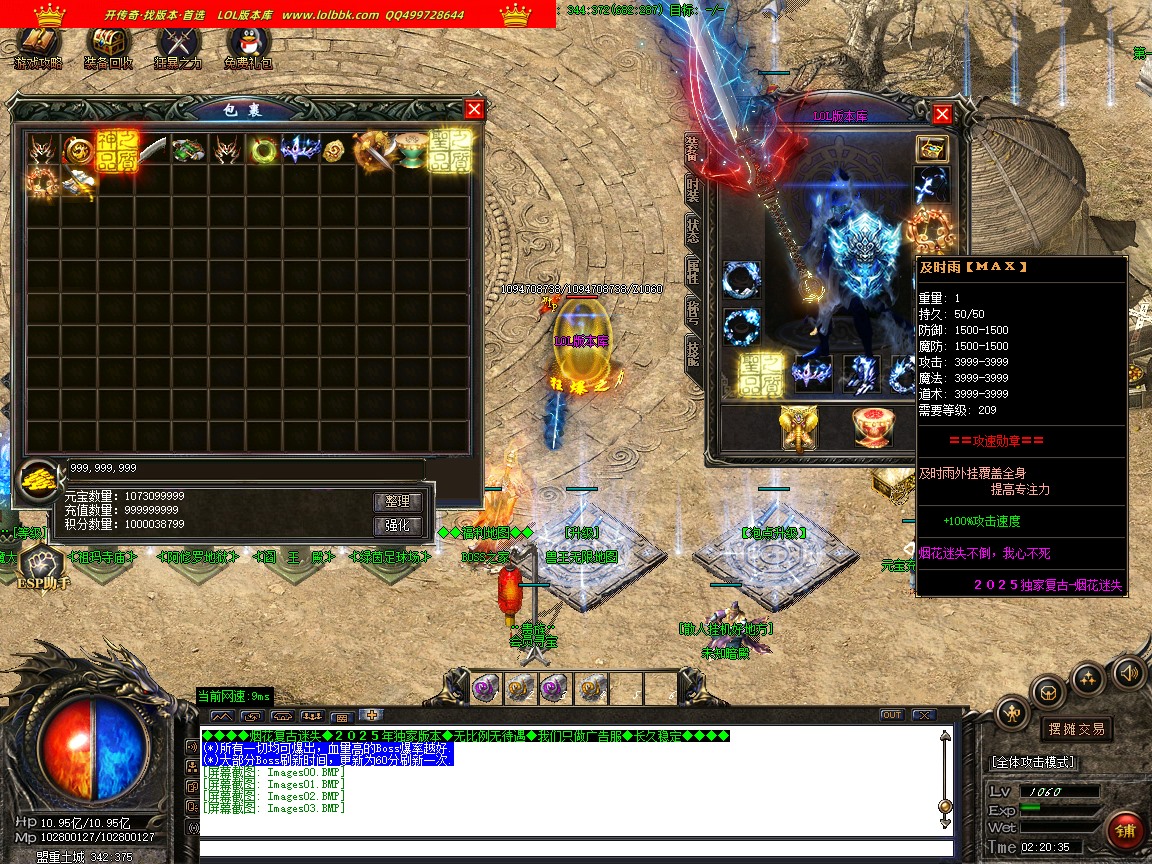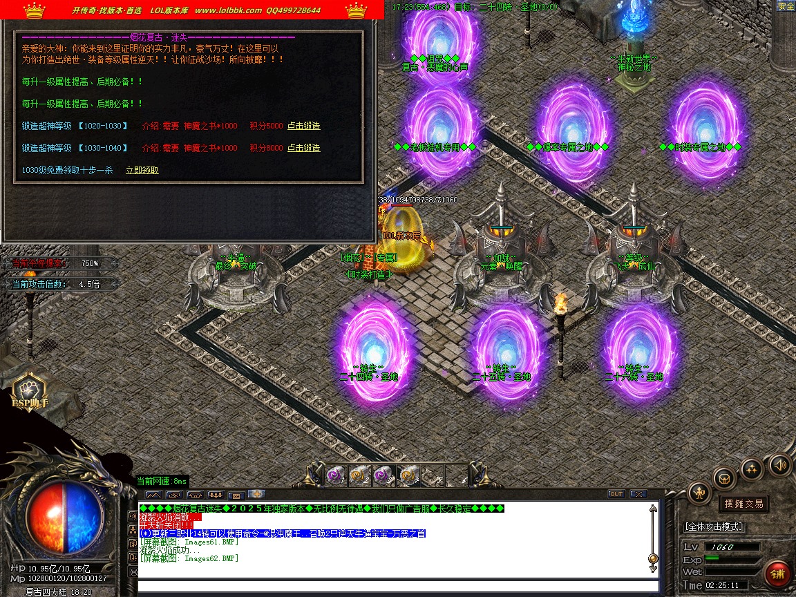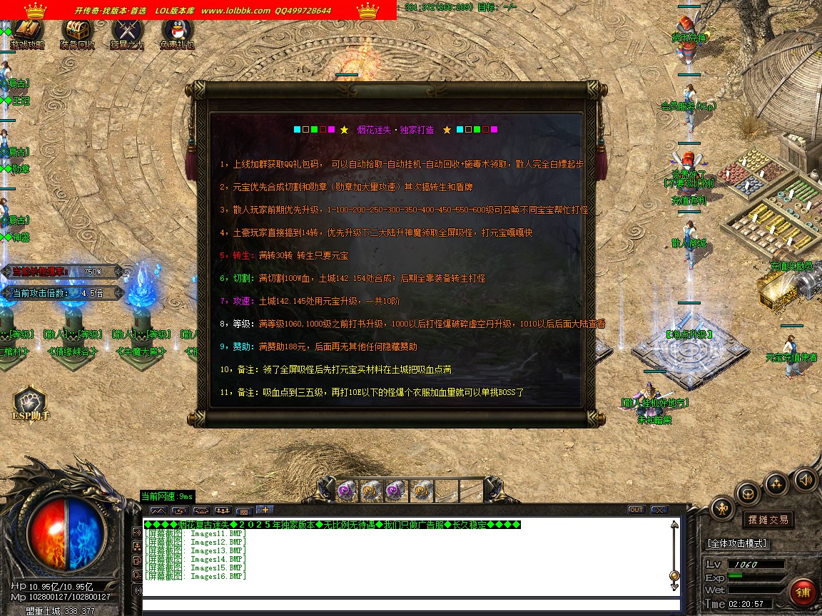 由于各个传奇版本都是本人先架设测试截图再发帖展示上架
