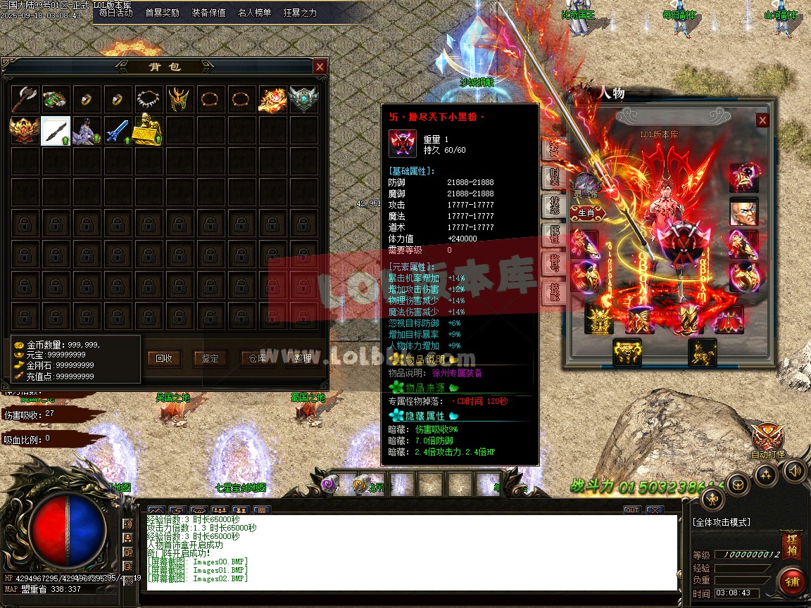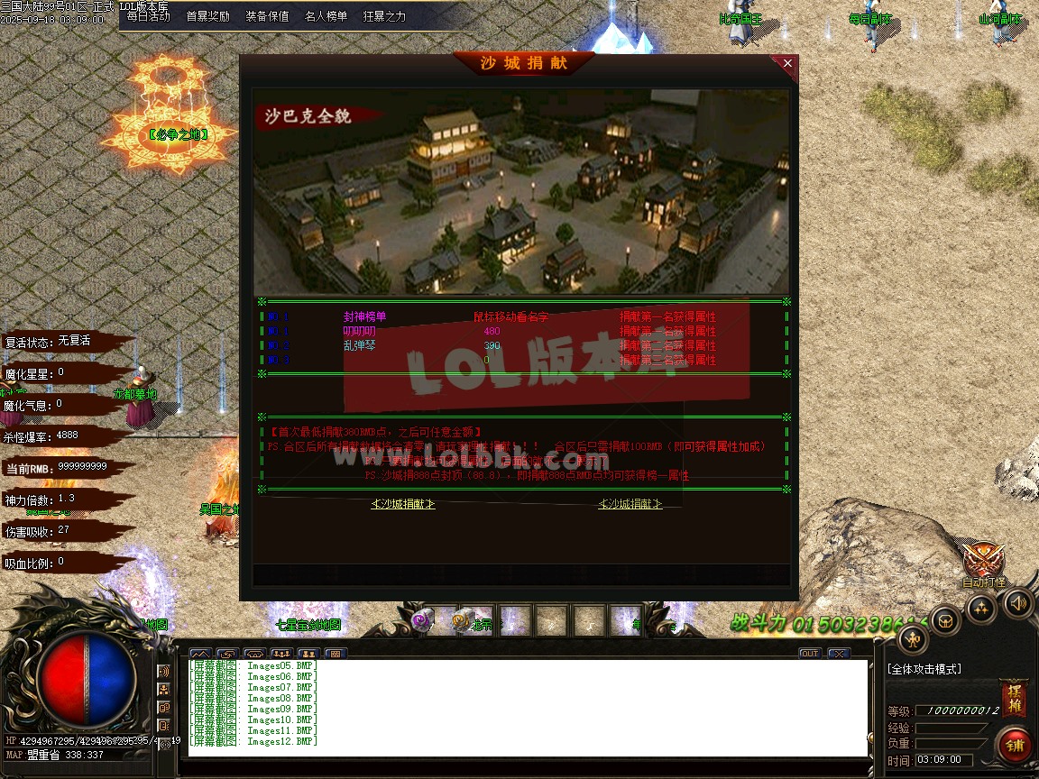 由于各个传奇版本都是本人先架设测试截图再发帖展示上架