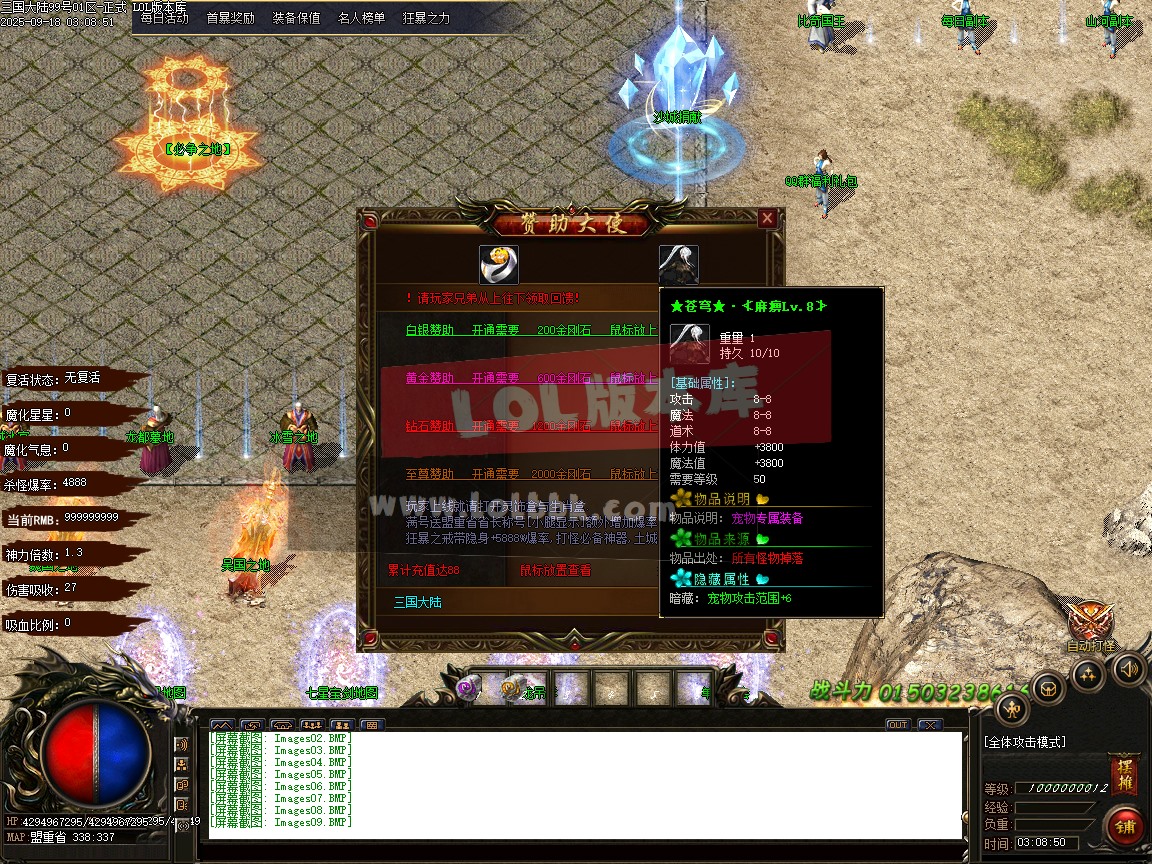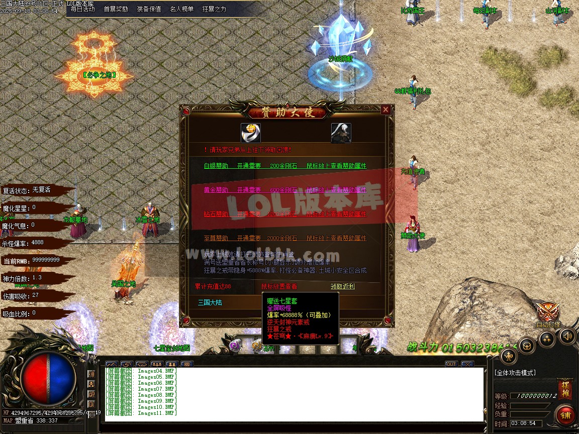 版本文字介绍:全网最新独家三国大陆剧情专属神器单职业传奇版本-第十八大陆-群雄争霸-新GOM引擎