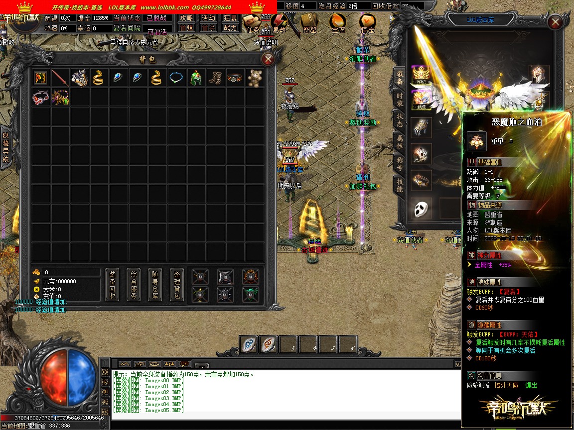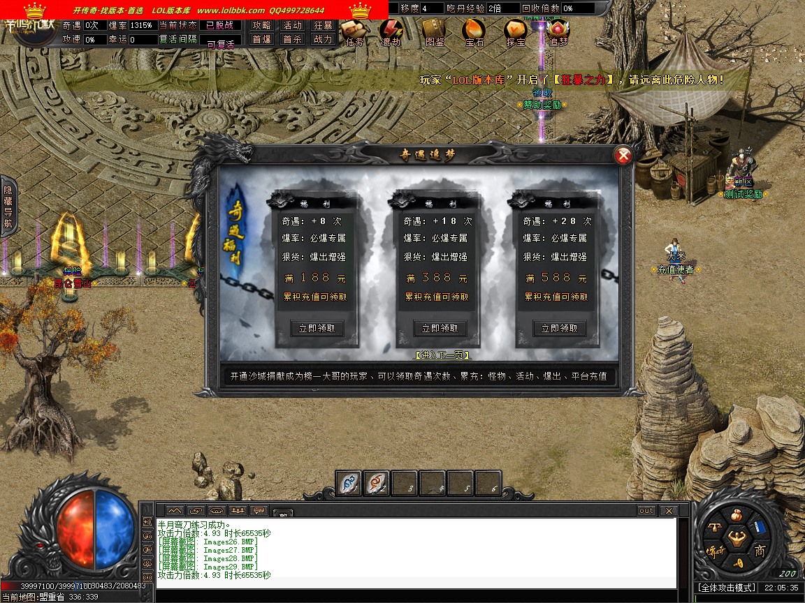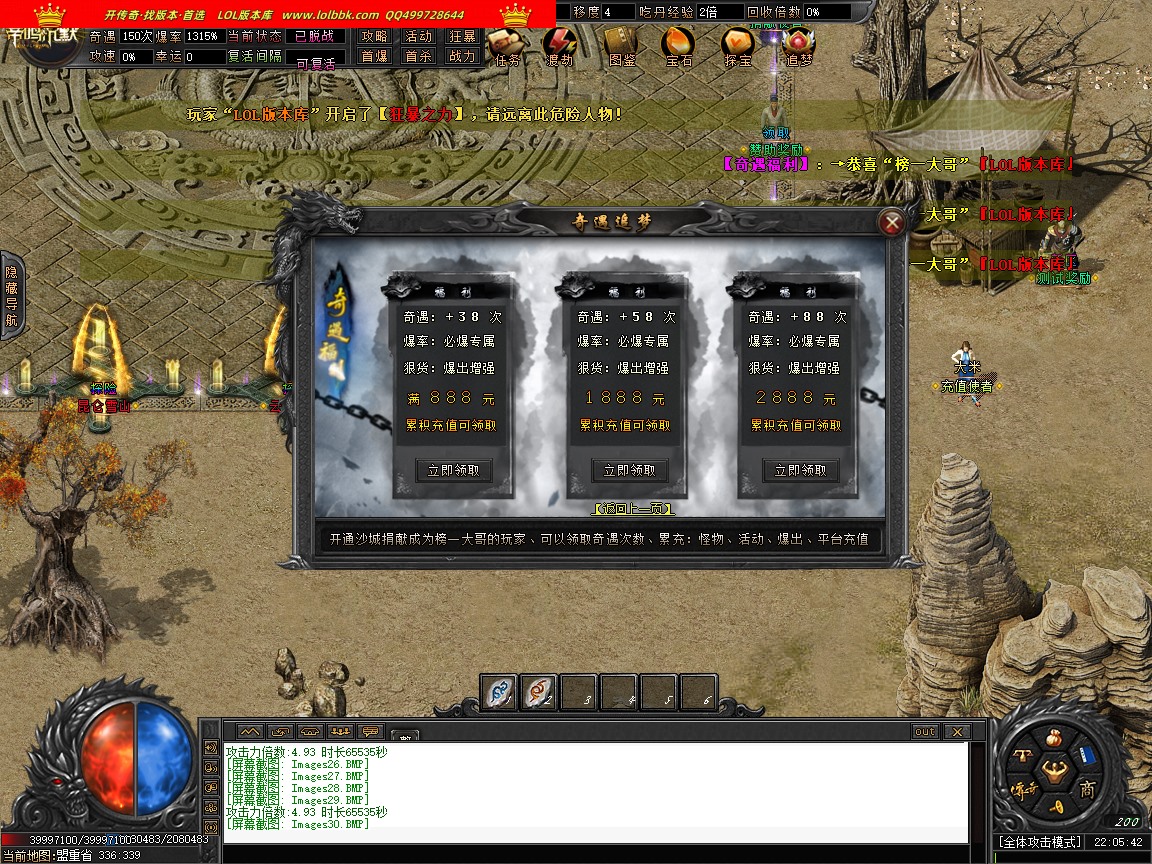 由于各个传奇版本都是本人先架设测试截图再发帖展示上架