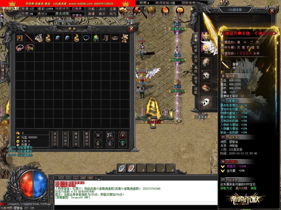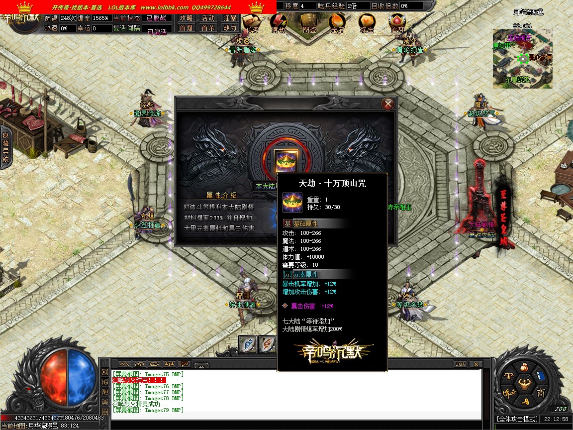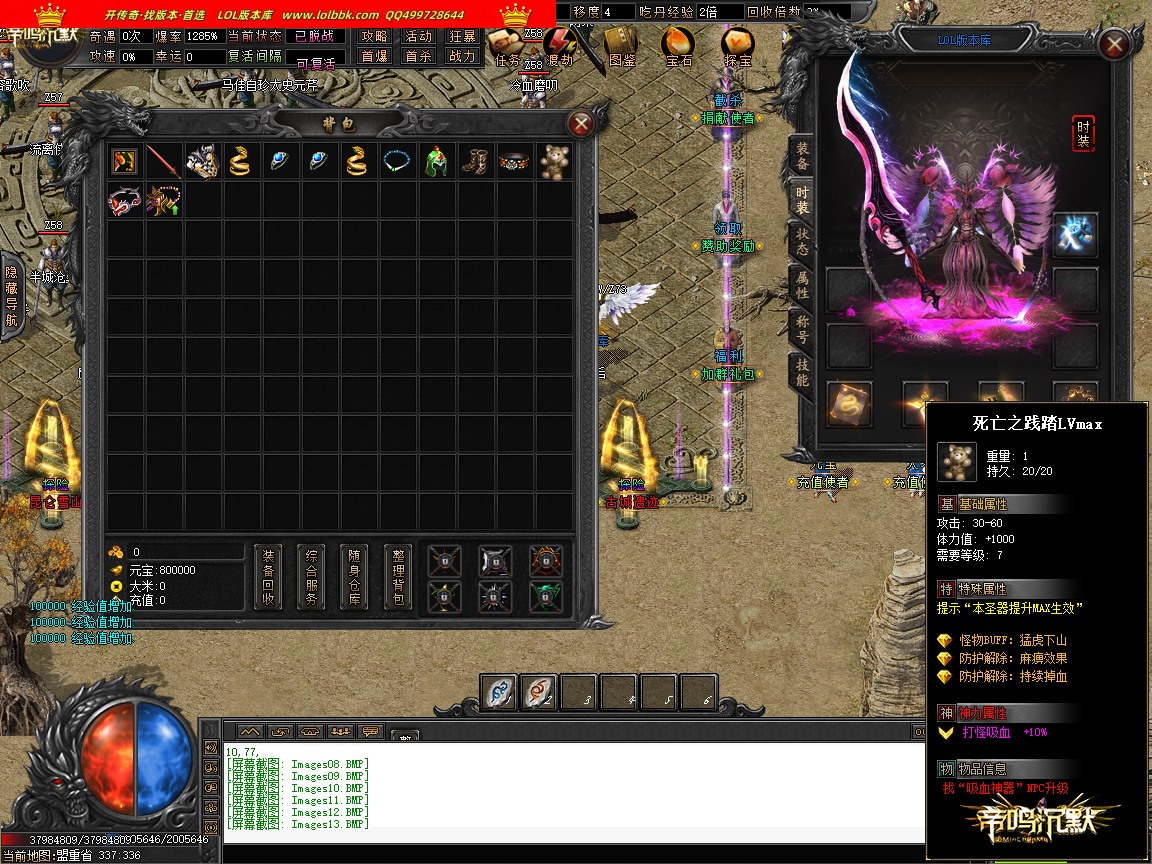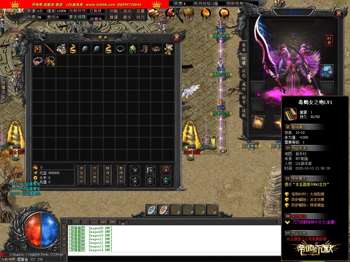 由于各个传奇版本都是本人先架设测试截图再发帖展示上架